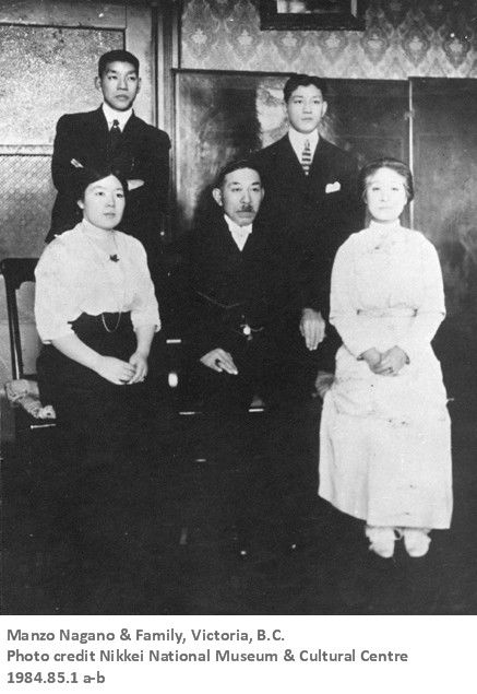1877 A 24-year-old from Kuchinotsu in Nagasaki Prefecture, Manzo Nagano landed in New Westminster, B.C. in 1877 and became the first recorded Japanese immigrant to this country.An energetic Issei (first generation) of many talents, he was a longshoreman; a fisherman; and an entrepreneur who owned real estate, gift shops, a hotel, a Japanese grocery store, and an export business to Japan of salted salmon in Victoria and a restaurant named Ricksha in Seattle. In failing health, Nagano returned to his hometown in Nagasaki in 1923 where he passed away in May of the following year.