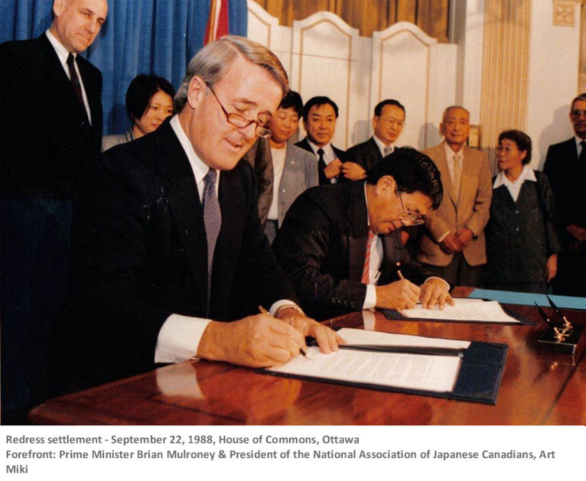 After years of lobbying by Japanese Canadians, a redress settlement was reached on September 22, 1988 between the federal government and the National Association of Japanese Canadians. This was largely propelled by the hearings in the U.S. into the incarceration of the Japanese Americans in 1980 and the subsequent settlement on September 17, 1987 in which an apology was issued, $20,000 to survivors, and a $50 million education fund to raise awareness. In Canada, the settlement included an apology; compensation of $21,000 for eligible individuals; a $12 million community fund to rebuild community infrastructure such as community centres; the restoration of Canadian citizenship to those deported to Japan; pardons for persons with criminal records charged under the War Measures Act; and the establishment of the Canadian Race Relations Foundation in 1997 with funding of $24 million. Twenty-four years after the redress settlement, B.C. made a formal apology to persons of Japanese ancestry for its role in the injustices committed against them. On May 7, 2012 , B.C. made a formal apology to persons of Japanese ancestry for its role in the injustices committed against them. The apology was followed ten years later on May 21 with the announcement of a $100-million initiative by the Province in recognition of the historical wrongs. The British Columbia-based society, Japanese Canadian Legacies Society, is overseeing the implementation of the BC Redress funds under six pillars: community & culture, seniors health and wellness, heritage preservation, monument, education, and anti-racism.