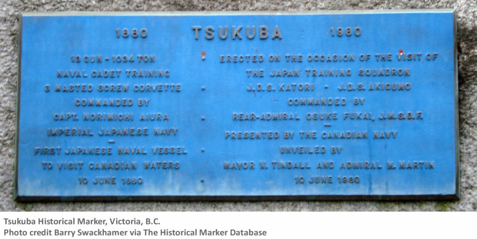 1858 The first Japanese visitors to the land, later to become Canada, were shipwrecked sailors rescued by a British ship and brought to Esquimalt Harbour in B.C. 1880 The first Japanese vessel to dock in what was to become Canada was the Tsukuba 10. A naval training ship, it landed in Esquimalt, B.C. where its crew stayed for three weeks.