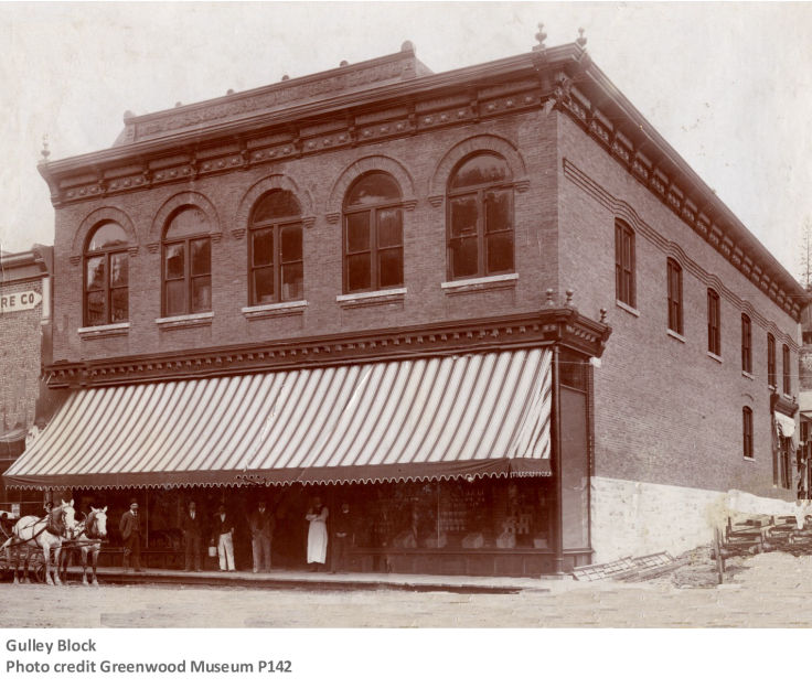 Building #10 – 201 South Government Street Circa 1897, the Wood Block (currently referred to as the Frazee Block) exemplifies others constructed in mining towns around the turn of the 19th century. After relocating from Hamill Block, Morellos Ervin Frazee was the first occupant, operating a grocery and bakery store. During World War II, it was converted into building #10 with laundry sinks on the first two floors and a bathhouse in the basement. It became home to 14 Nikkei families in 1942, some of whom are listed below.When the Greenwood original school was destroyed by fire on December 31, 1951, the Wood Block served as a temporary classroom.Today it is home to the Greenwood Volunteer Fire Department that had originally been constructed in 1898 and located on Long Street before being burnt down. Hamada, T.Isomura, MissKariya, E.MatsuiMiyashita, I.Murao, K.Nakamura, G.Shinde, K.Shoji, T.Yoshida, DenkiYoshida, T.