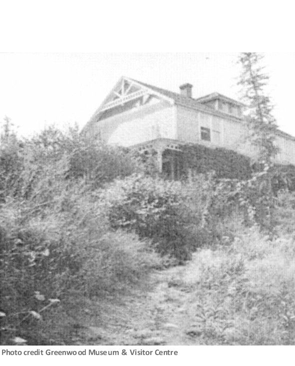 The history of the house can be traced to 1899, the boom era of Greenwood, when it was built and owned by Henry Curtis Shaw, a lawyer, and his wife Dora who were originally from PEI. After leaving the city for Vancouver where Henry became a police magistrate, the house was purchased in 1905 by Hugh and Margaret McCutcheon. They had three sons, one of whom was killed during World War One. Hugh served as the Collector of Customs for 24 years in Greenwood where he passed away in 1924. In 1947, the house was sold to Alma (aka “Betty”) Forshaw who was married to Jim Forshaw, both of whom were long-time residents of Greenwood. Ownership of the home was then transferred to Wilfred R. Tremblay in 1959. After fire burned the house in the 1960s, it was torn down. The property was subsequently purchased by George Alexander McKenzie in 1972 who worked for the Cooke Lumber Company during the 1960s. It was his intention to build a new home and retire there, but this plan never materialized as the sawmill closed in 1967-68. The McKenzie family left Greenwood but returned in the early 1980s. When George passed away, his wife Donelda moved to the east coast to join her family.