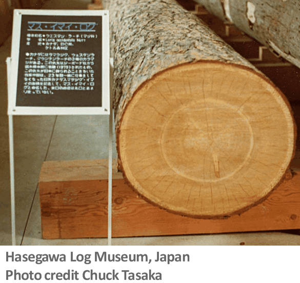 In 1942, Masatsugu ‘Mas’ Imai was interned in Greenwood, a community which he was to make his home. Mas and his wife, Ritsuko Imoo, raised their children Rita, Wendy, Bernadine, and Cindy there. Mas worked for A&A Service and James Forshaw Ltd. and was active in the local community especially with the Greenwood Curling Club. Mas passed away from cancer in 1978. Jim Forshaw Jr. , whose father James Forshaw Sr. owned A&A Service, described Mas as a valued and trusted employee, but more importantly a wonderful family friend. In 1979, the Hasegawa Museum in Tokyo, Japan was looking to collect and display different species of logs from all over the world. Boundary Sawmill in Midway received a request to obtain a prime example of Western Larch that was 40’ long, premium clear rough lumber, straight grain and no knots. Forester Bill Uphill knew exactly who could fill the order. The crew of ‘Old Guys’ could do the job! For many years, James Forshaw Ltd. was the prime supplier of specialized timber products to Boundary Sawmill/Pope & Talbot. After a brief retirement, James Forshaw Sr. and Alan Cudworth, unretired to resume logging and took on the challenge with the crew of Boyd Foster, Alex Parakin and Rod McKinney. Two trees had to be cut down in case one was damaged. Utmost care was required when the tree was felled. Other trees adjacent were felled to make a padded site for the prime tree to land on. No bark was to be knocked off. Finally, the log was cut in length and wrapped in used conveyor belting for protection. This was the last time James and Alan who were life-long friends worked on an important project together. The Western Larch log was sent by Seabord to Japan to the Hasegawa Log Museum in Tokyo. Before the log was shipped out, James named the log “MAS IMAI LOG” in memory of his friend’s active community leadership. When I took a year leave of absence from teaching on Vancouver Island in 1979 to study conversational Japanese, I was asked to locate this museum and take photos. Fortunately Haruhiko Akazawa, my Japanese friend who worked for C. Itoh Company in Nanaimo, was back in Tokyo and drove me to the museum. In Greenwood, Jim Forshaw Jr. said that Mas was well-known and liked. Over the years, Mas became the defacto manager, accountant for A&A Service and James Forshaw Ltd. Jim went on to say, “What better way to honour the memory of a great person, who lived in a city (Greenwood is the smallest city in Canada) whose people have shown what working together, understanding and patience can achieve.” Sadly, when the bubble burst in Japan, the Hasegawa Log Museum closed.