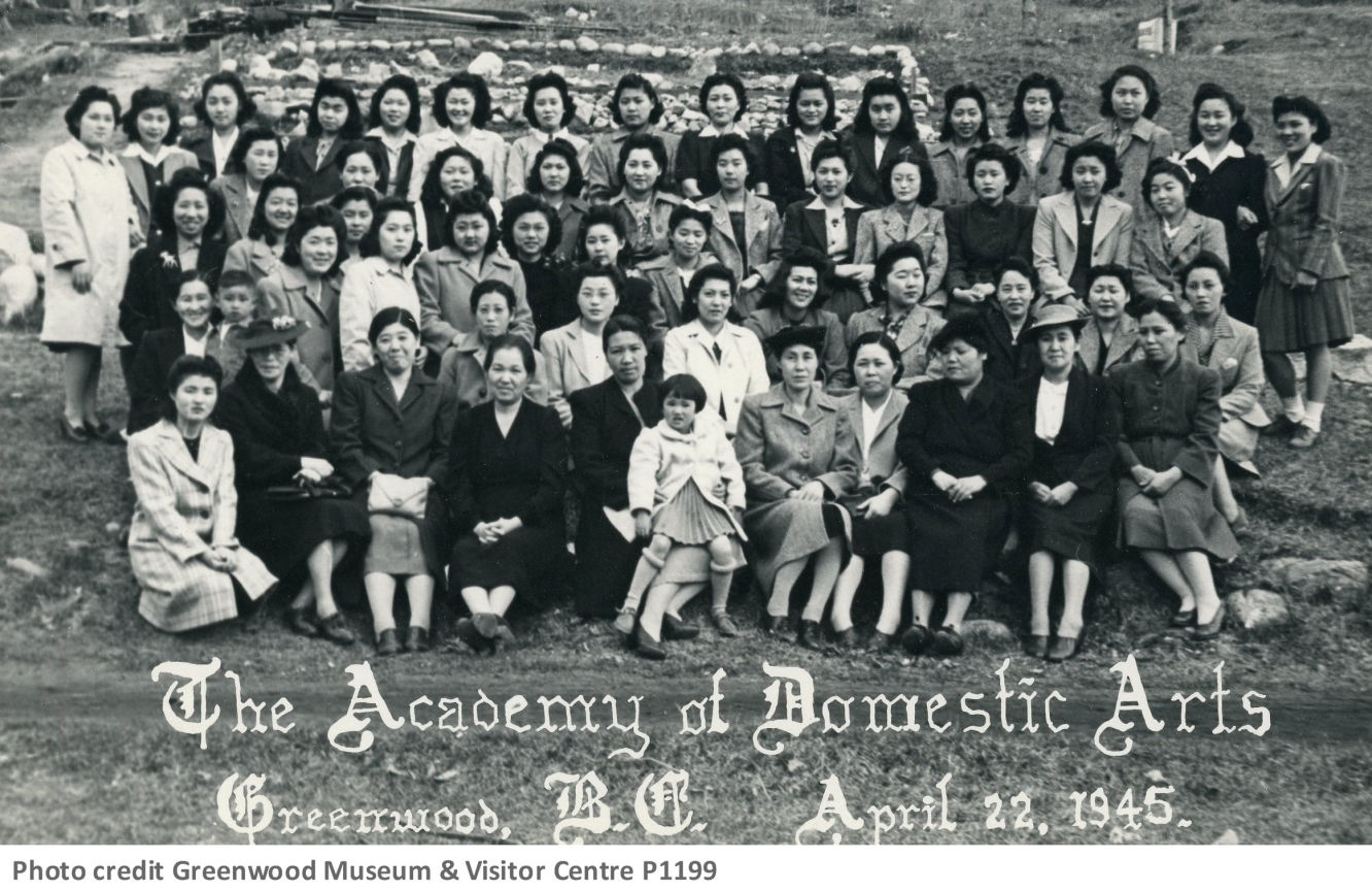 Many Nikkei appreciated their experience in Greenwood as reflected in letters from two women who moved east, Terry Takeuchi and Tsumo Matsuzaki. While in Greenwood, Mrs. Matsuzaki was an instructor at the Academy of Domestic Arts (front row, 4th from the left). Her letter written in Japanese is summarized as follows: A personal letter thanking Mr. McArthur for making it a happy place during the incarceration. Mrs. Matsuzaki states that Hamilton is completely different to Greenwood, especially in commodity prices. People are not familiar with Japanese Canadians, but she has good relationship with the landlord. Her daughter Miyoko became the first Nikkei teacher in a public school and church. Mrs. Matsuzaki also wrote that there are many unemployed people in Hamilton. Mrs. Matsuzaki closes her letter saying that she was so happy when she lived in Greenwood.