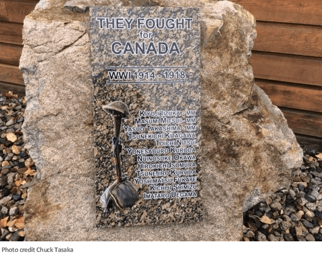 In September 2021, a memorial monument was erected at the Nikkei Legacy Park in Greenwood, B.C. to honour the twelve Japanese Canadian war veterans who were sent to the first internment site in B.C. Over 200 Japanese Canadians wanted to enlist to fight for Canada in World War I, but the B.C. government refused knowing that they would automatically be entitled to enfranchisement. The right to vote meant that these Japanese Canadians would have the rights and freedom enjoyed by all Canadians. With a stroke of luck, the would-be recruits found out at a chance meeting with an Albertan JC that they could enlist in Calgary. Many paid their own way to successfully enlist there. Since many of the small rural communities in this prairie province were having a difficult time meeting the quota to form a full battalion, they were desperate to enlist men from other provinces. The Japanese Canadians from B.C. joined the Albertan forces in Calgary and Medicine Hat. For example, according to his son David, Masumi Mitsui enlisted September 1, 1916 with the 192nd Overseas Battalion, and was posted with the 9th Reserve Battalion. They proceeded to France for active duty with the 10th Battalion, 2nd Infantry Brigade, 1st Canadian Division on March 5th, 1917. When both French and British battalions could not crack Vimy Ridge, it took the full Canadian army to overtake Vimy Ridge namely Hill 70, but at a very high cost of casualties.